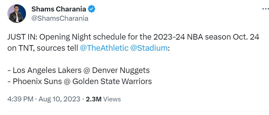 As you can see based on the tweet (X, Xeet, Xweet?), the Lakers will be playing the Nuggets in Denver on October 24, while the Suns will be p…