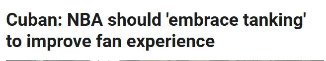 Up front, I’ll go out on a limb and say this: Cuban is right, because the majority of attendees — those that are trying to have a good time with their family — are not as offended by tanking as they are by the inability to even watch the basketball game in the first place. I think tanking is a bit more problematic for the fans than Cuban believes in his tweet, but not by all that much.