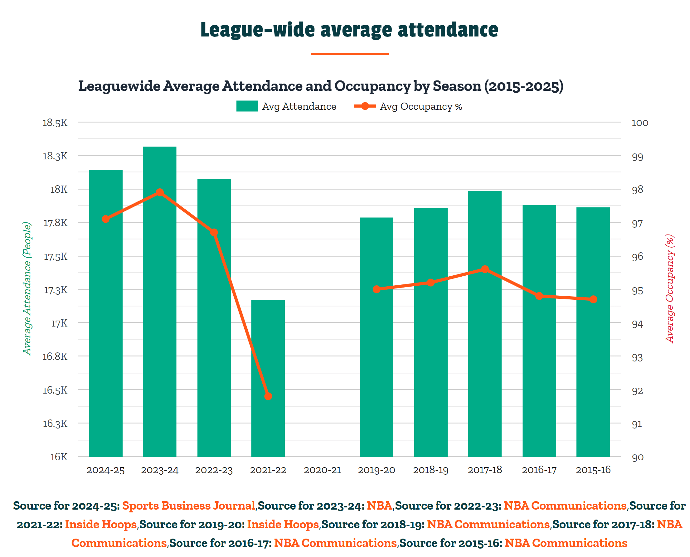 The above chart ends at the 2024-25 season, and that’s by necessity. However, with the league’s new media deal, expect the revenues to spike even further, all the while the ticketing revenues, as a percentage of the bigger pie, stay, at best, the same.